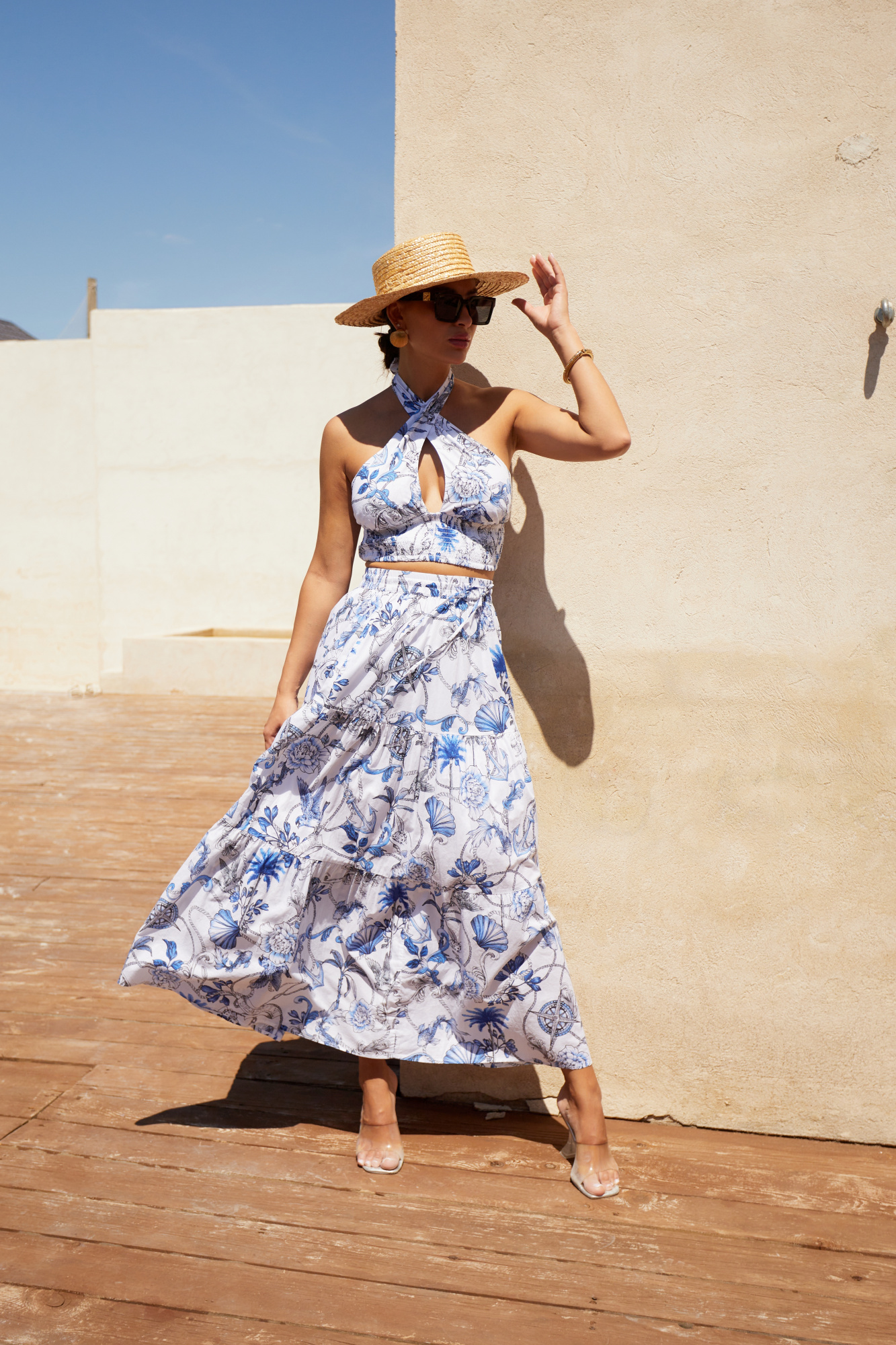 Юбка макси длины, свободного кроя, с боковыми карманами и эластичным поясом.