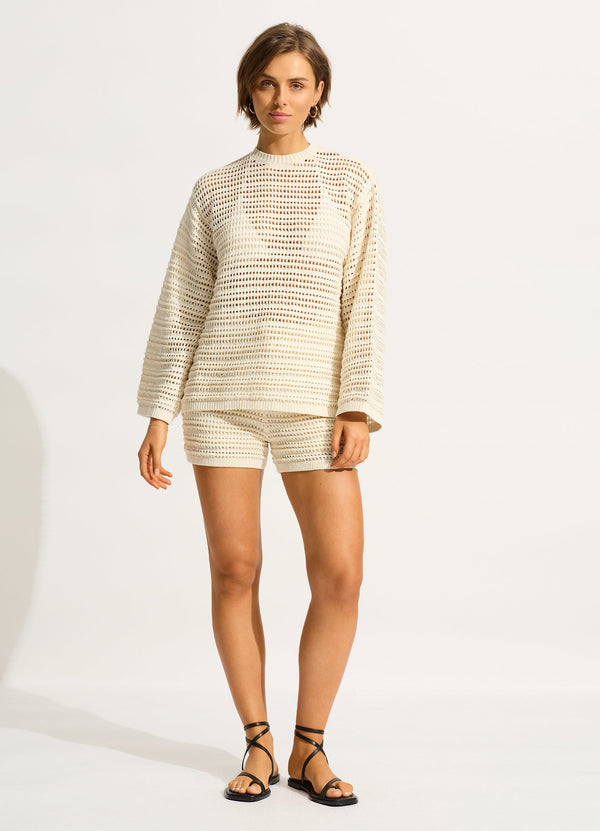 Вязаные шорты на подкладке с эластичным поясом и шнурком.
