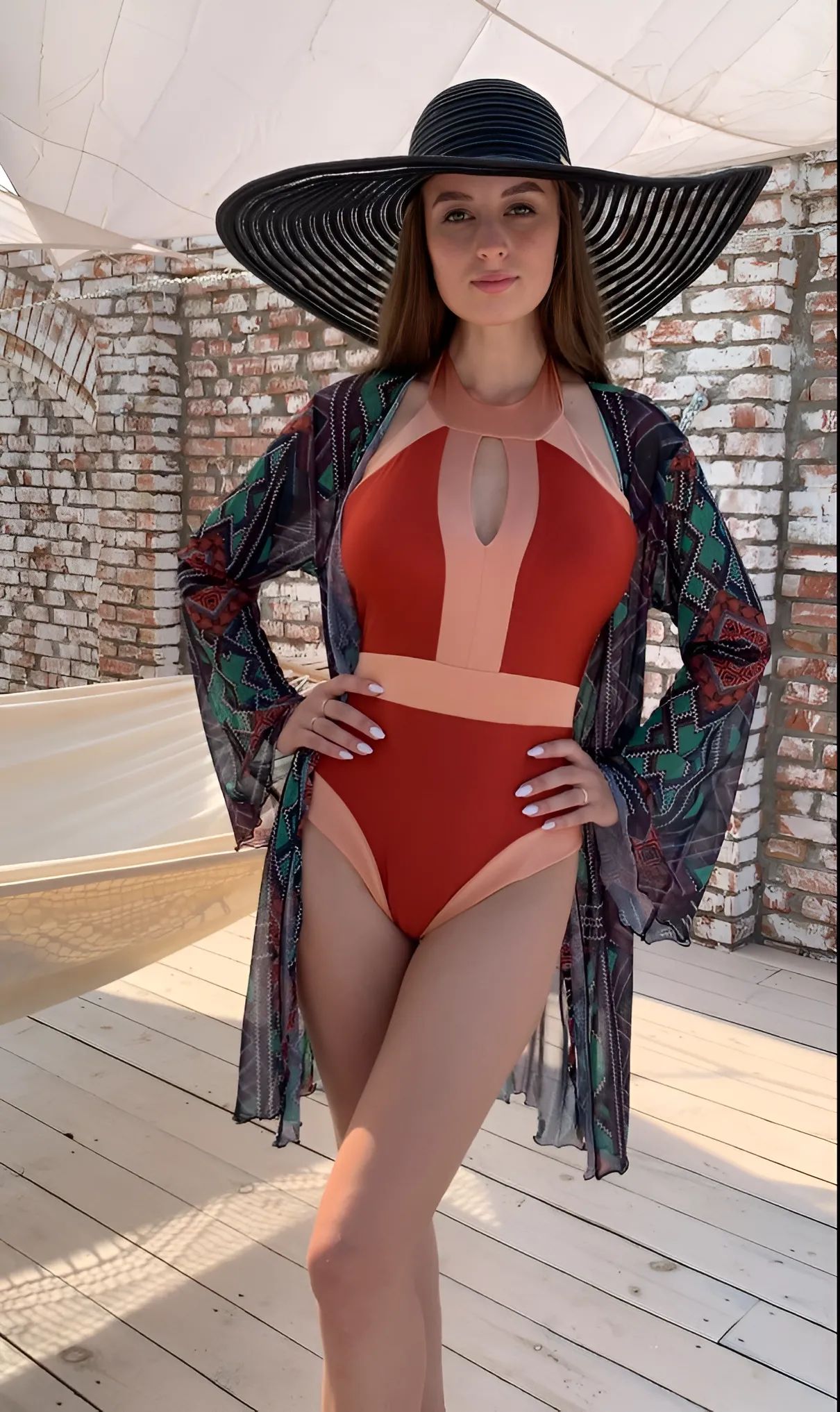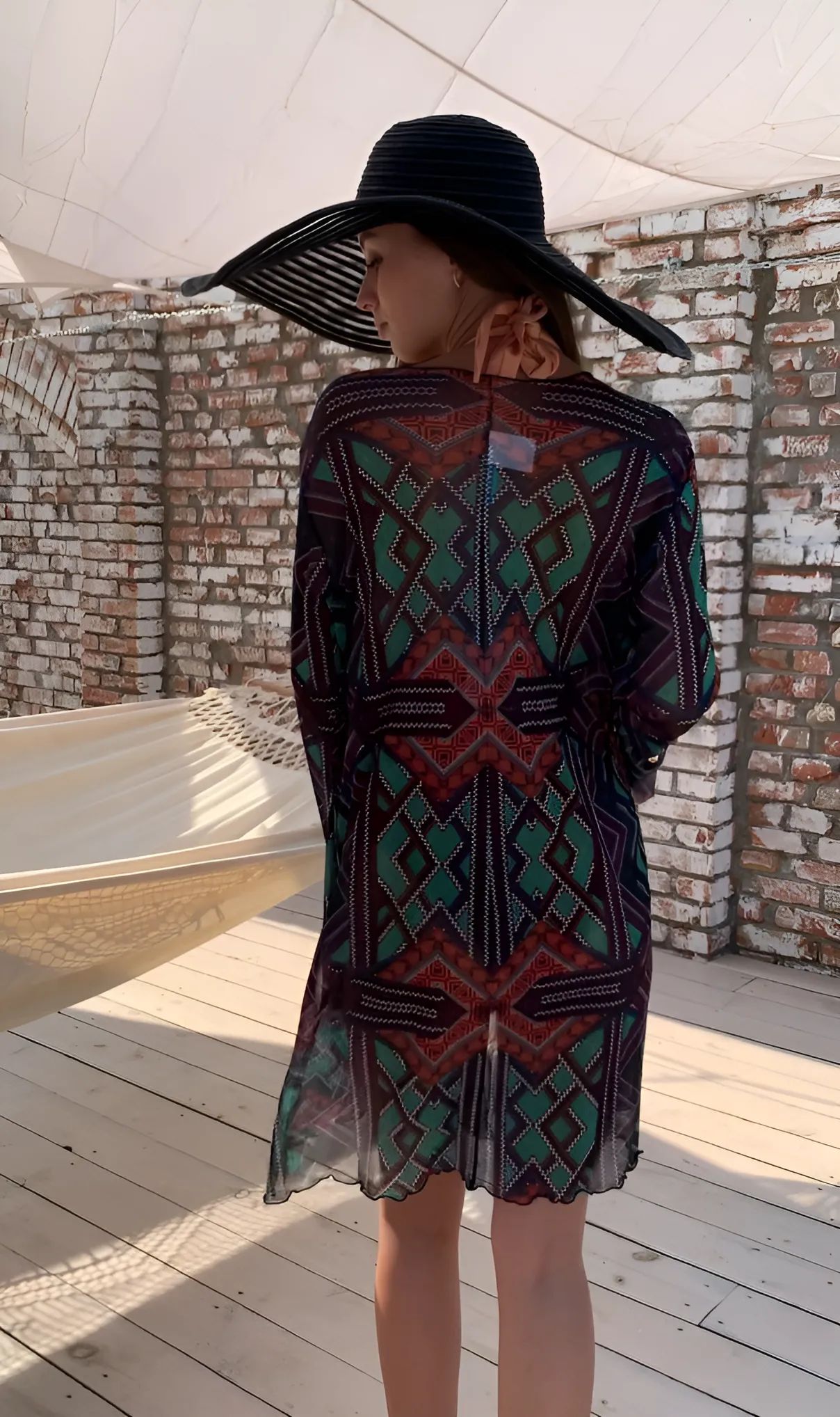 Боковые разрезы по бедрам. Модель выполнена из высококачественного материала с фактурой сетки и полупрозрачным эффектом.